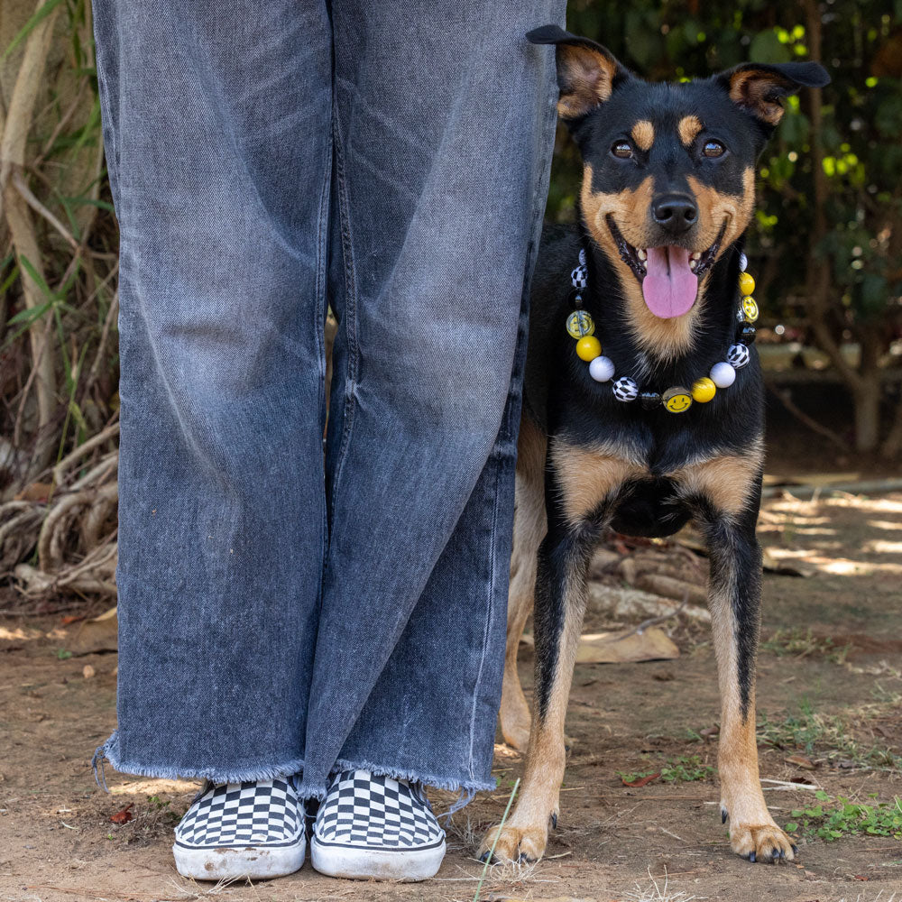 זה הזמן לשדרג את הלוק עם קולרי החרוזים המטורפים שלנו! קולרי "בסטיז בידז" מיוצרים בעבודת יד ומותאמים במיוחד למידות של החבר הכי טוב שלך. מה שמיוחד בקולרים האלה וגם מפתיע הוא שהם מתפקדים גם כקולר וגם כתכשיט. קולר City Vibe מיוצר מחרוזי אקריל ו-Resin בגווני שחור, לבן וצהוב. הקולר משוב חרוזים בצורת סמיילי יחד עם חרוזים במרקמים שונים, הנותנים לקולר מראה עירוני מלא בסטייל. תתכוננו להיות הבעלים של הכלב הכי אופנתי בשכונה! יש לבצע מדידה מדויקת!!! כל מכירה היא סופית. מומלץ לשלב את הקולר עם תגי השם שלנו.