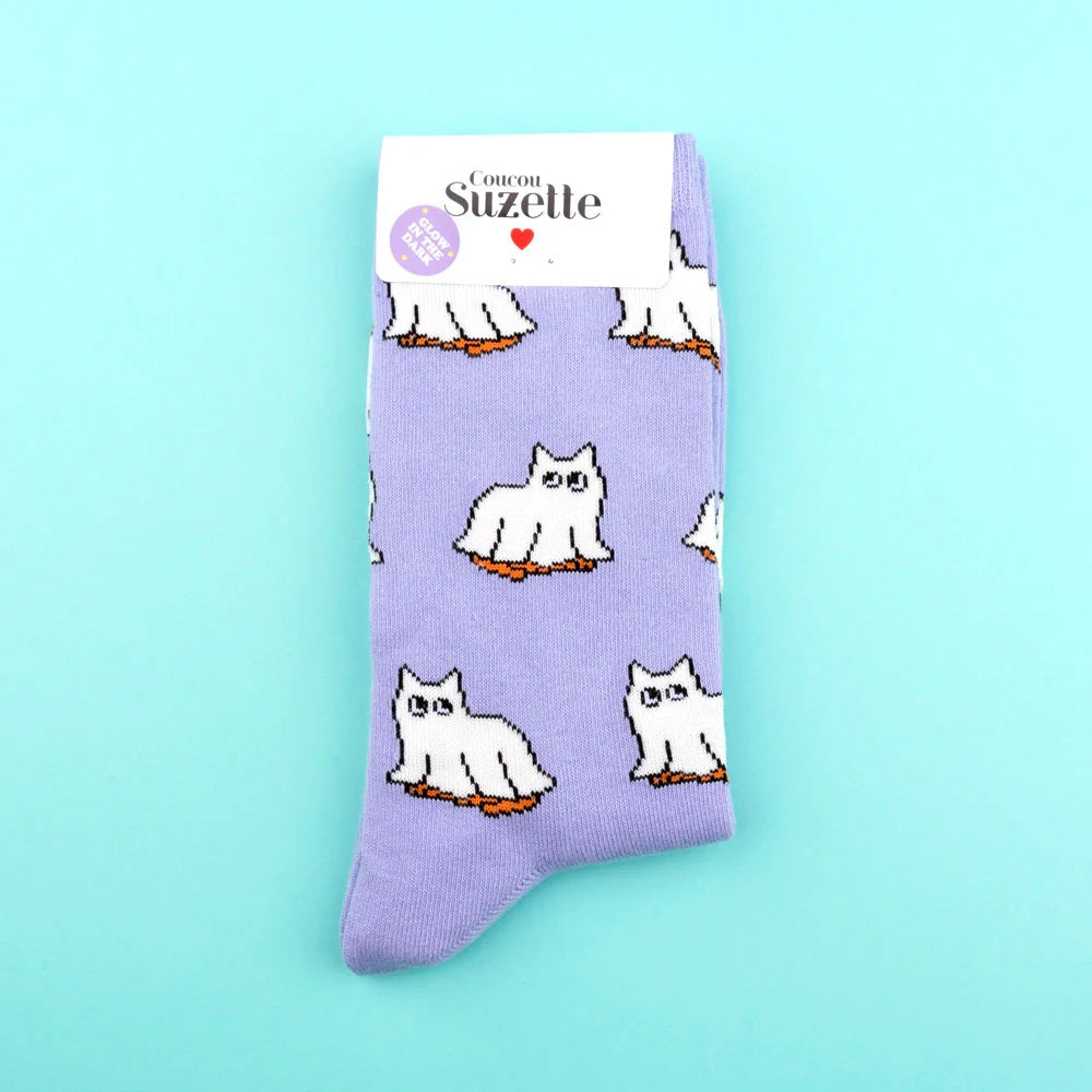 גלו את הקסם שקורה כשהאורות כבים! הגרביים המהפנטות של Coucou Suzette מביאות את הלילה לחיים עם חתלתולים שובבים המחופשים לרוחות רפאים זוהרות.