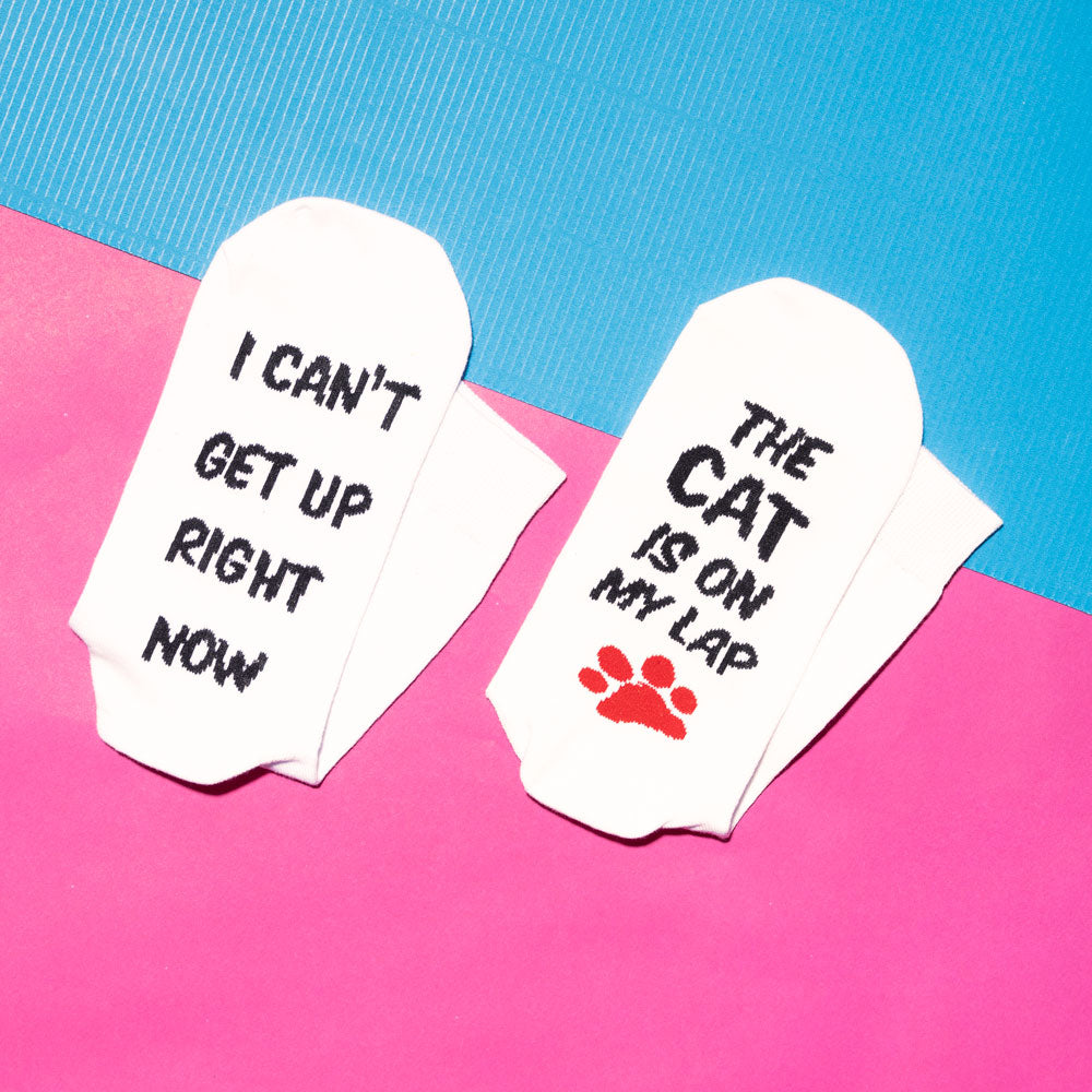 כשחתול הבית בוחר להתכרבל עליך — זה חוק. לא משנה מה קורה סביבך, אתה פשוט לא זז.עכשיו תוכל לשדר את זה לכולם בלי לומר מילה. הגרביים האלה, בשחור-לבן מגניב, מכריזות בתחתית: "אל תבקשו ממני לזוז, החתול מתכרבל!"