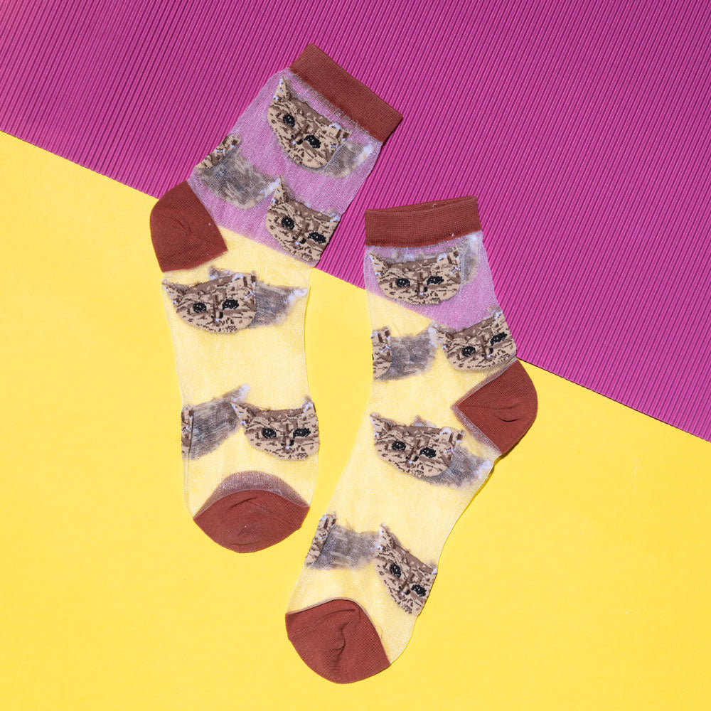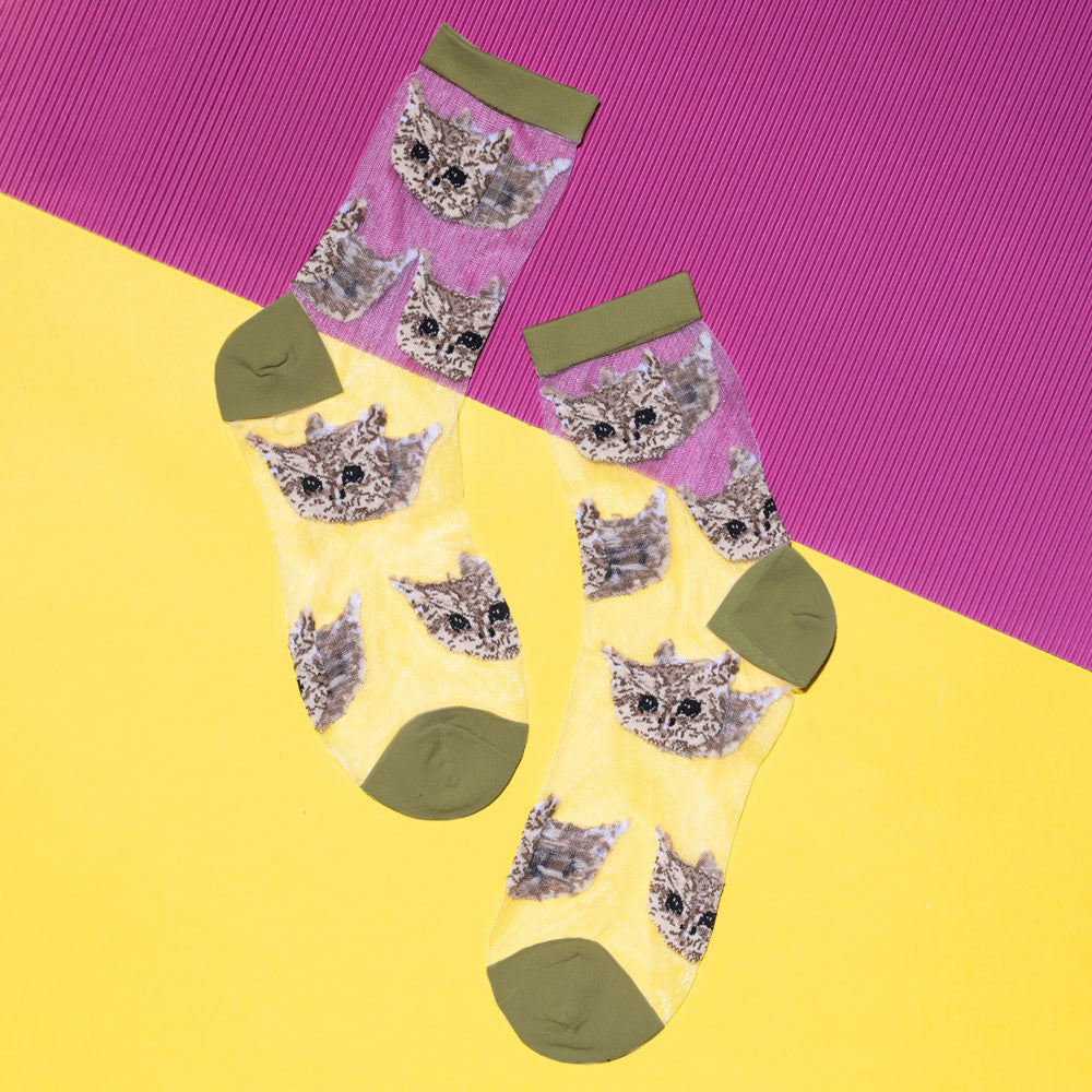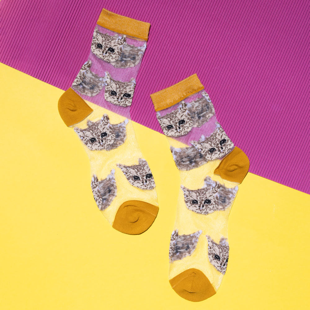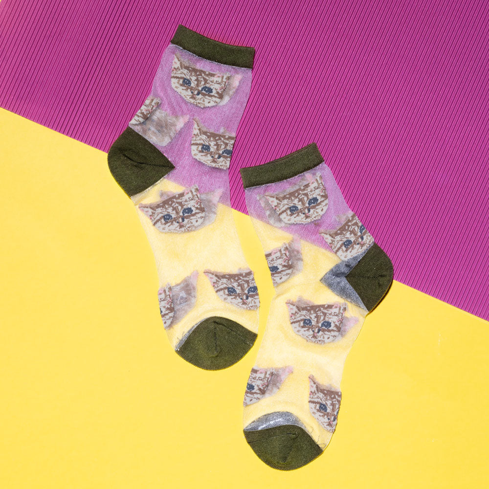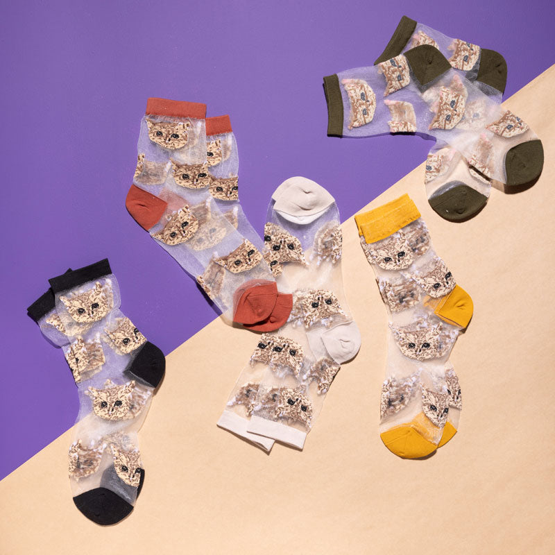 גרביים שקופות עם פרצופים של חתולים חמודים, שישדרגו כל לוק. מגיע במגוון צבעים.