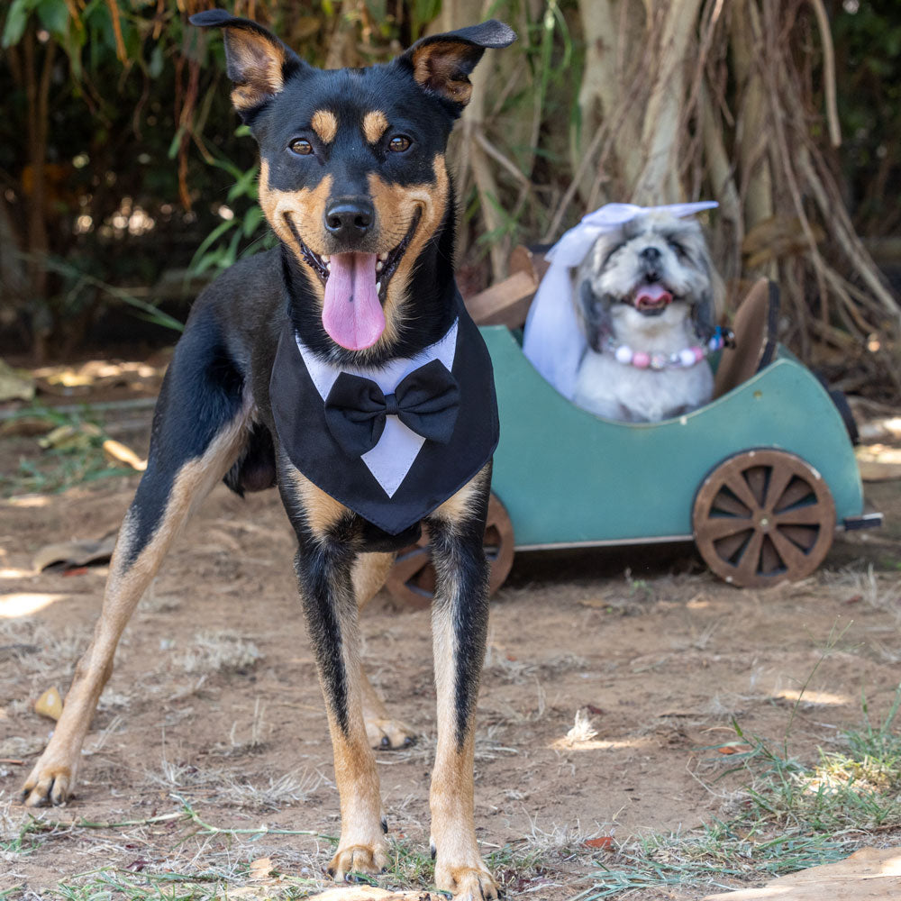 ומה עם החתן הפרוותי? גם לבני המשפחה הזכרים חשבנו - בנדנת טוקסידו אלגנטית שתהפוך כל כלב לג'נטלמן אמיתי!