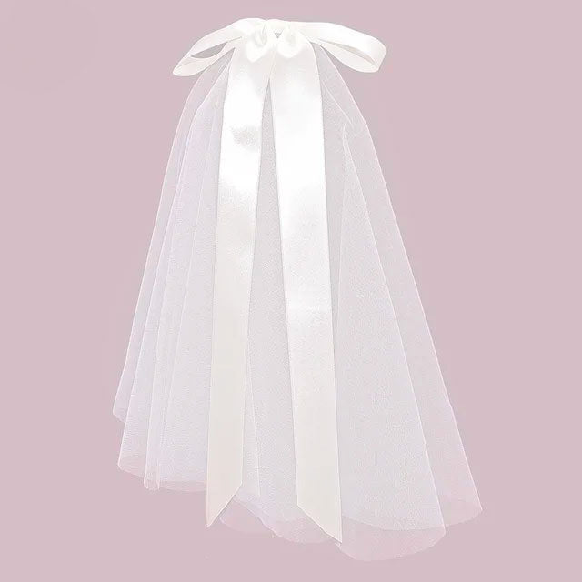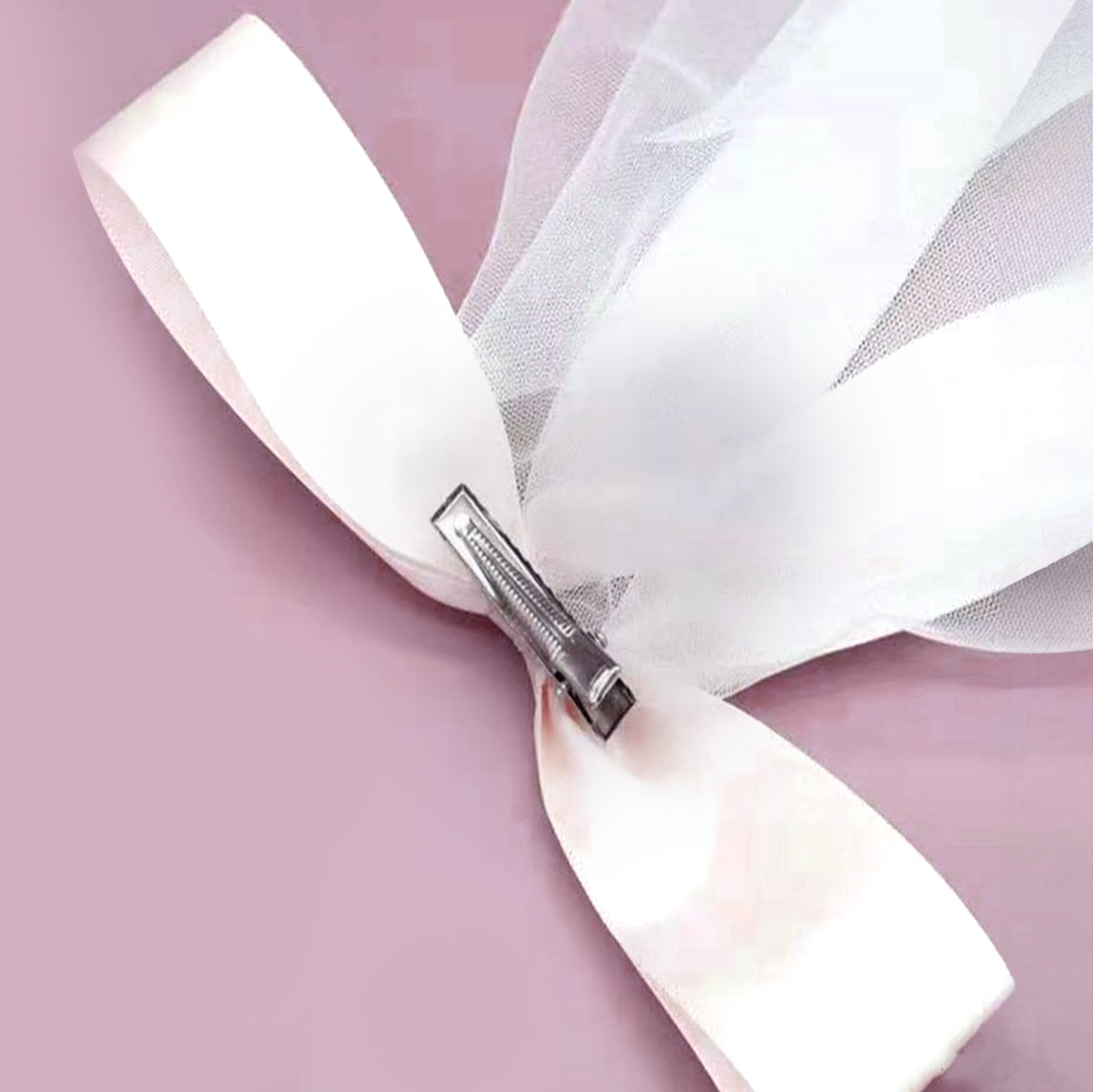 הינומה עם פפיון המתחברת עם סיכה, יושבת בצורה נוחה ומושלמת על הראש של הכלבה שלכם כך שאינה מפריעה או מכבידה במהלך האירוע המרגש.
