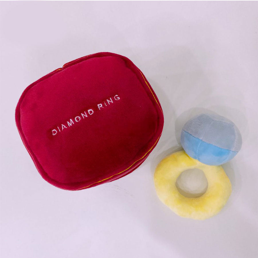 טבעת צעצוע מצפצפת רכה, פלאפית ונעימה במיוחד. מעוצבת בצורת טבעת יהלום ומגיעה בתוך קופסת תכשיטים, ממש כמו טבעת אמיתית. החיה האהובה שלכם יכולה לתפוס אותה בפה ולהביא אותה לבן או בת הזוג האהובים שלכם במחווה הכי רומנטית ומרגשת שיש.