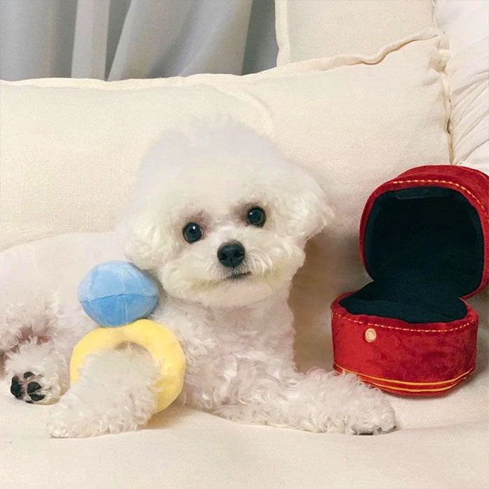 טבעת אירוסין פלאפית, מצפצפת ונעימה. תאפשר לשלב את חיית המחמד שלכם בהצעת נישואין מקורית ומצחיקה וליצור זיכרון מהמם עם החבר הכי טוב שלכם.