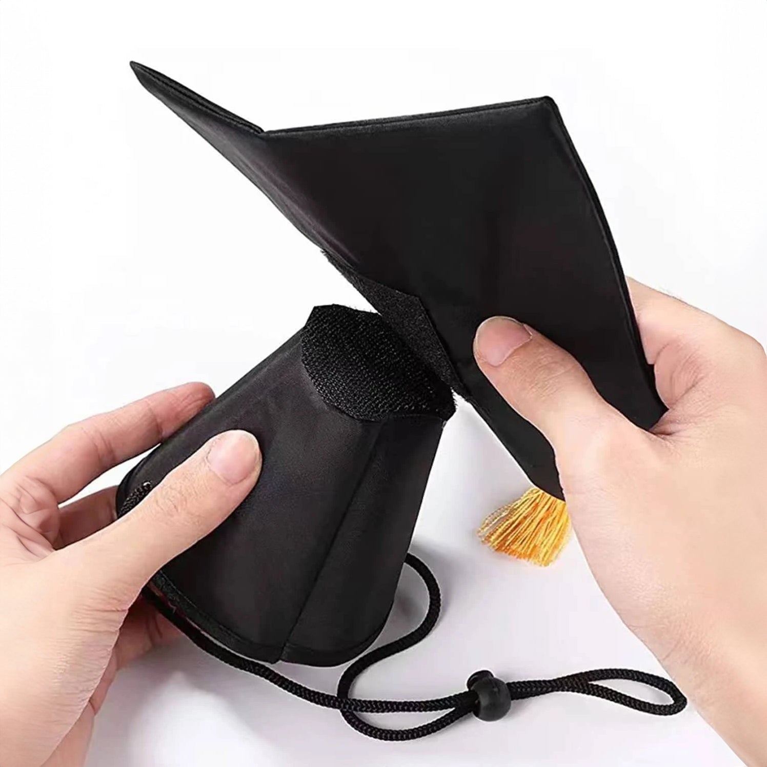 כובע סיום תואר עם ציצית קטנה, מתאים לכלב או לחתול המשפחתי, מתלבש עם חוט סביב הראש, קל ונוח לשימוש.
