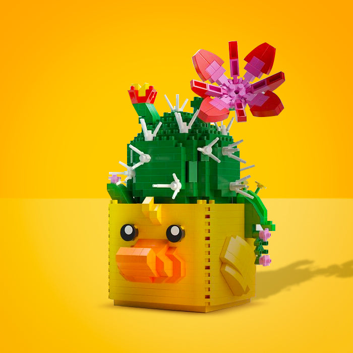 משחק הרכבה של עציץ קקטוס פרחוני בצורת אפרוח. מתנה מקורית לחובבי ז'אנר משחקי ההרכבה, אוהבי הקקטוסים והורגי הצמחים.