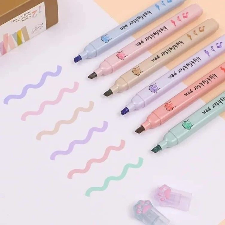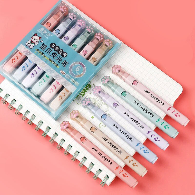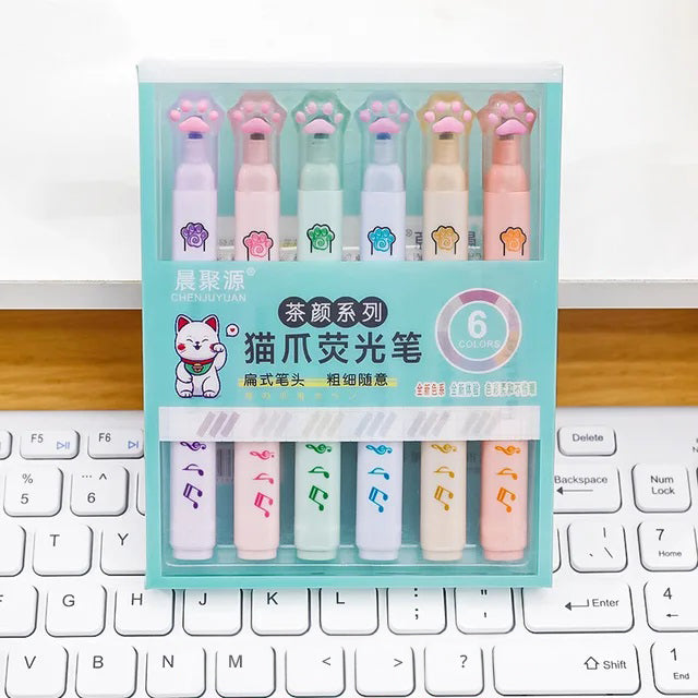 מארז של 6 טושים עם פקק מתוק בצורת כפה. טושים עמידים ונוחים לשימוש, סימון והדגשה, בצבעי פסטל עדינים.
