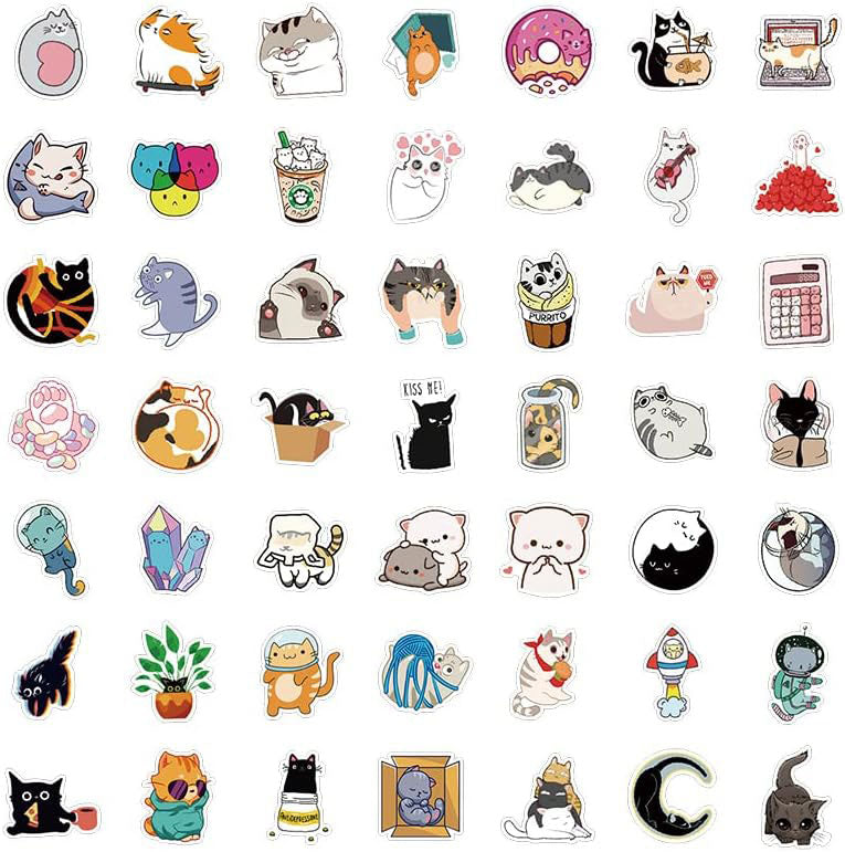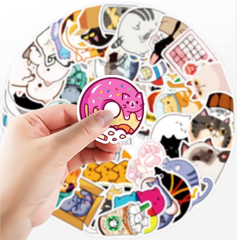 50 מדבקות טרנדיות, צבעוניות ומשעשעות של חתולים במגוון מצבים משעשעים.