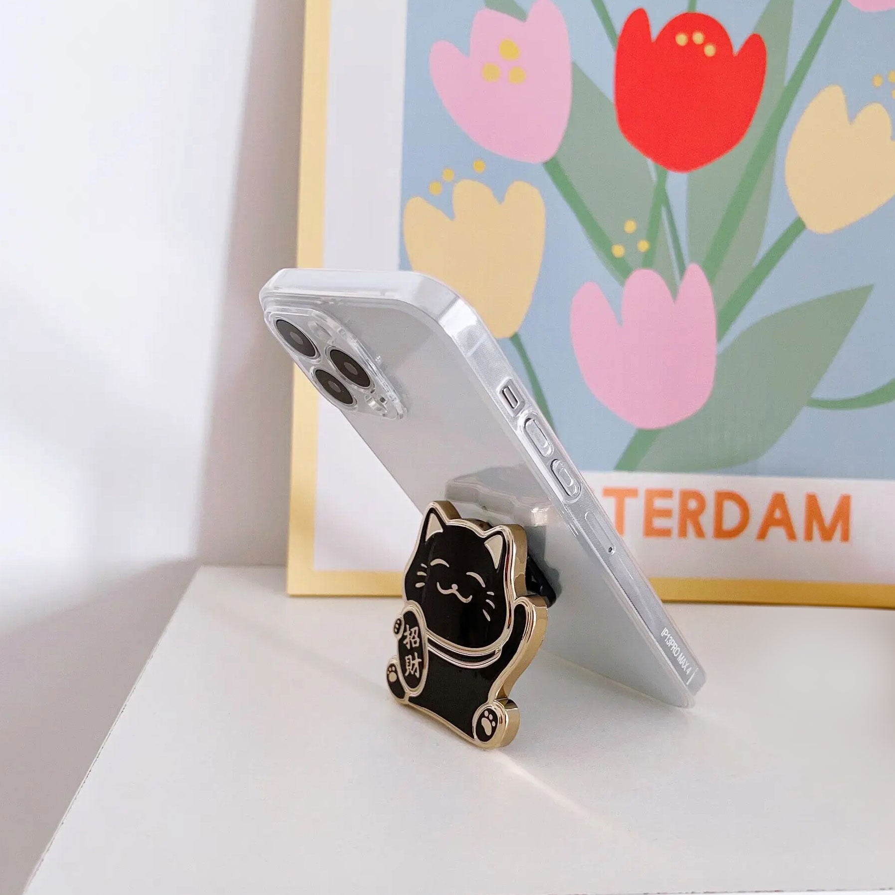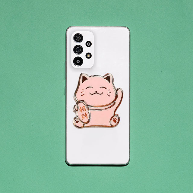 מחזיק לנייד לאקי קאט צבעוני, מעוטר במסגרת זהב, יוסיף מזל וצבע לכל סמארטפון.