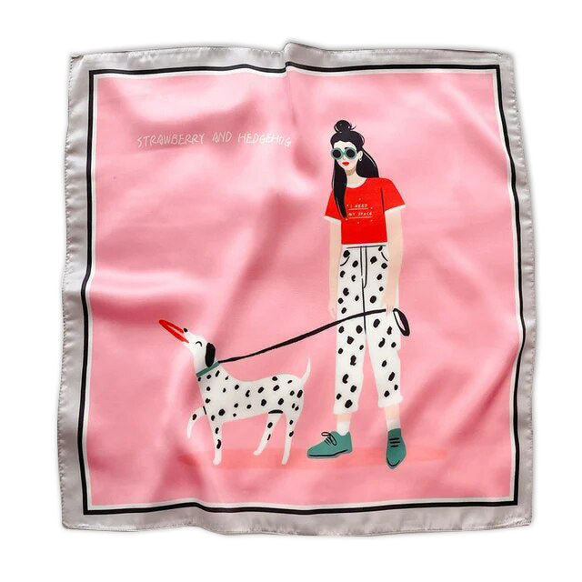 מטפחת מיוחדת עם איור יפיפה של אישה וכלב דלמטי בטיול כייפי. תוסיף נגיעה צבעונית וקורנת לכל הופעה, לתלייה על תיק, לקשירה בשיער ואפילו לתלייה בבית כאקססורי משגע.