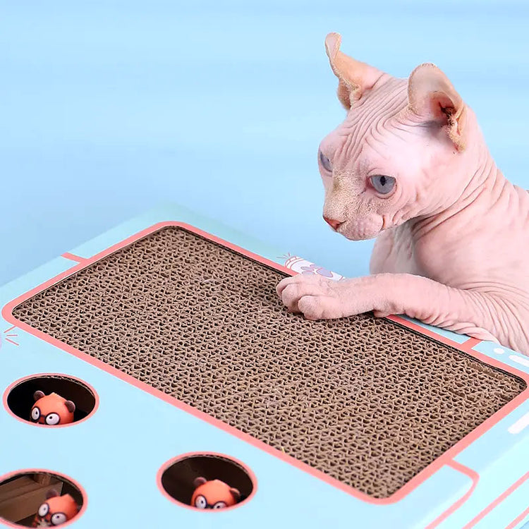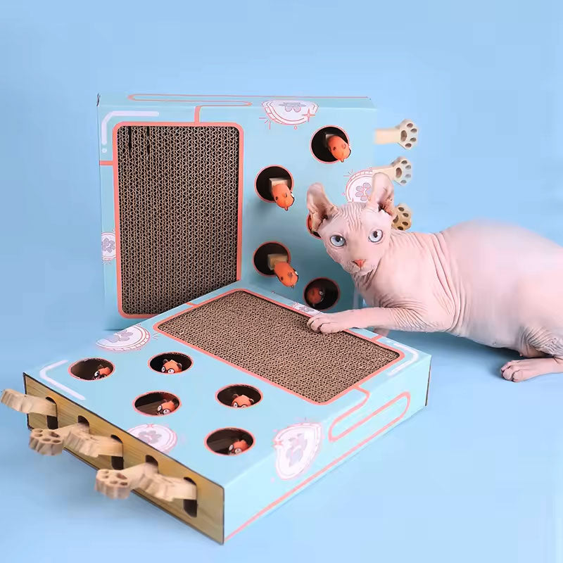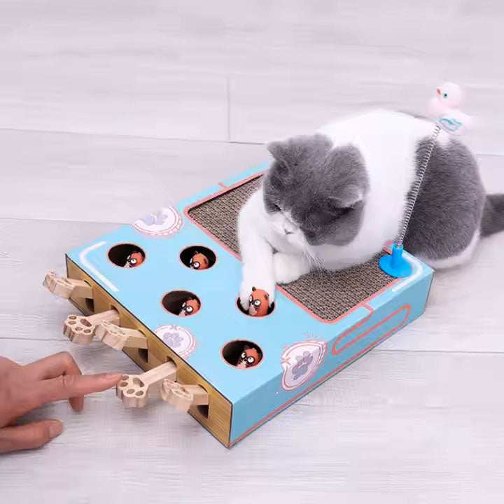 משחק אינטראקטיבי שיגרום לחתול שלכם להתאהב בכם מחדש. משלב משטח גירוד עם משחק משעשע של "הכה בחפרפרת". מנגנון הפעלה פשוט- אתה לוחץ החתול קופץ!