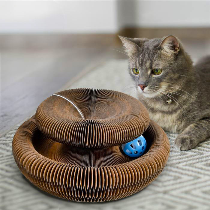 משחק מרתק בעיצוב אקורדיון עבור החתול הבייתי. עשוי מקרטון איכותי המספק משטח גירוד אידיאלי ומשולב עם כדור צבעוני המתגלגל ומסתתר בתוך המבנה הספירלי הייחודי. מספק שעות של פעילות, משחק והנאה.