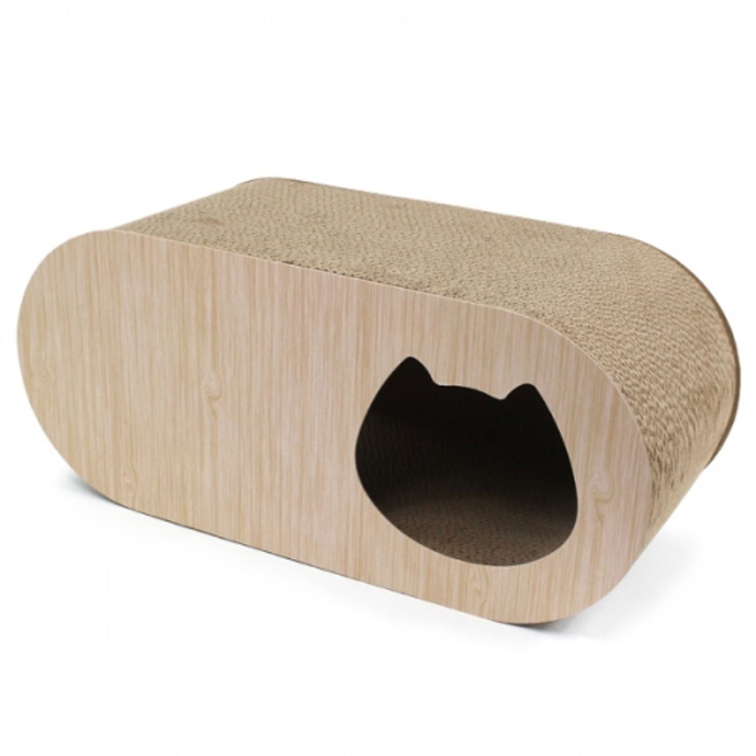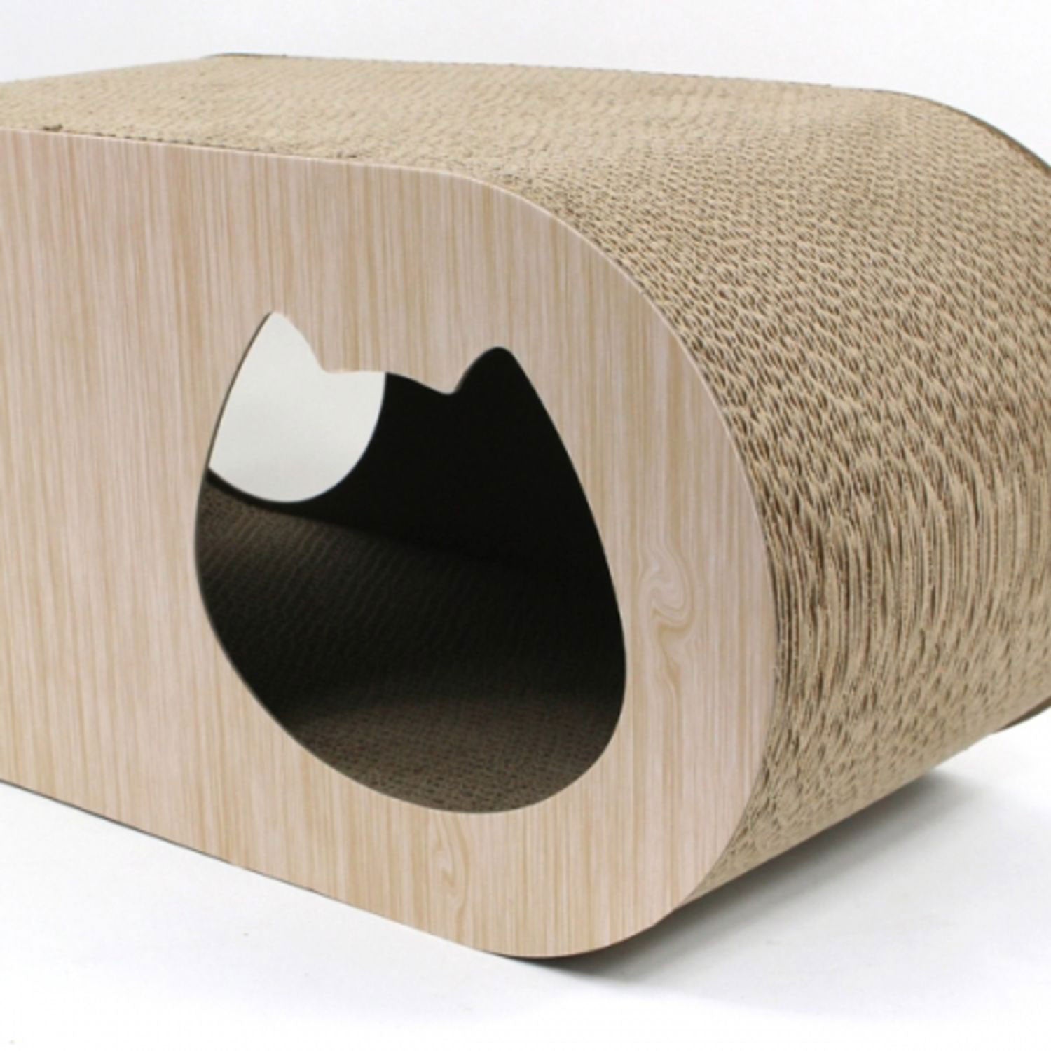 מתקן גירוד מעוצב ואלגנטי, עשוי מקרטון גלי, חזק ועמיד, עם ציפוי פורניר דמוי עץ.