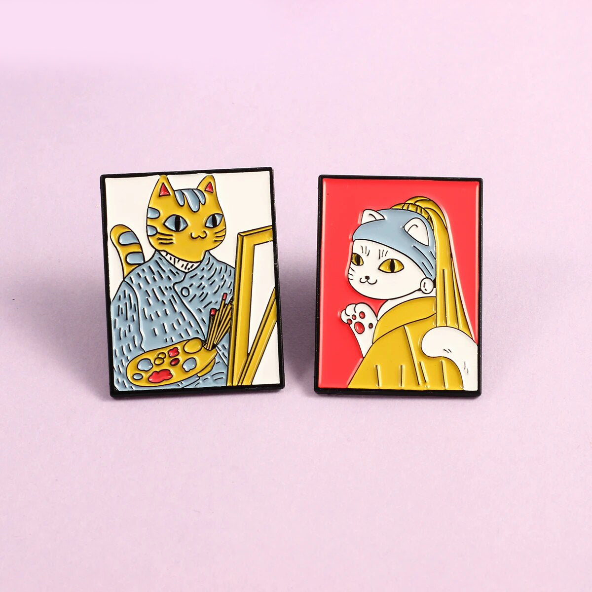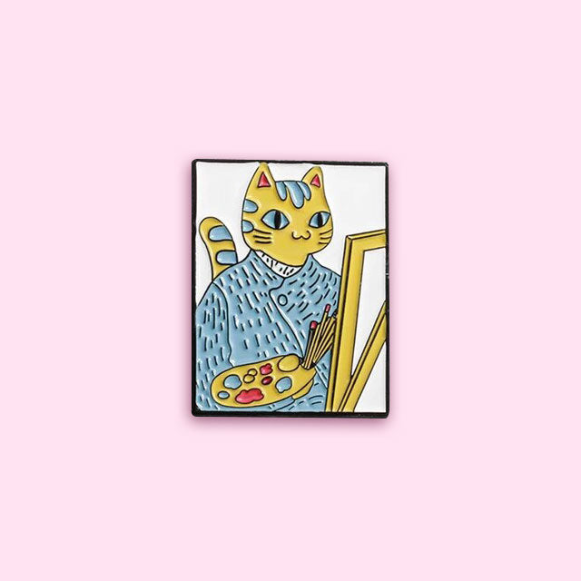 סיכת האמייל המיוחדת שלנו לוקחת השראה משעשעת מיצירת האומנות של ואן גוך כשאת מקומו בדיוקן העצמי תופס חתול שובב.