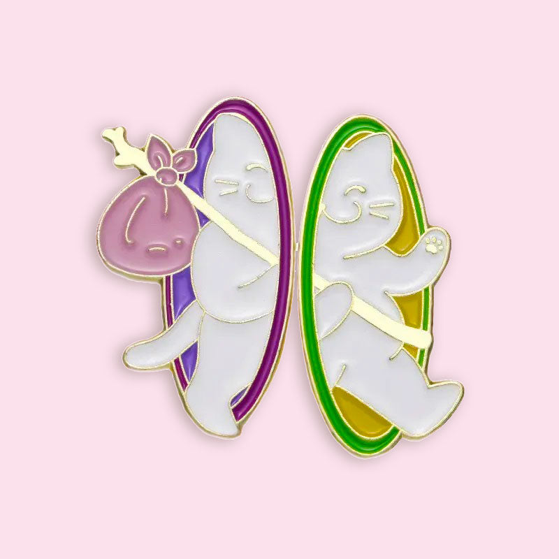 סיכה מיוחדת שהיא בעצם 2 סיכות נפרדות של חתול מתוק העובר במעבר סודי ומטייל לו בין עולמות.