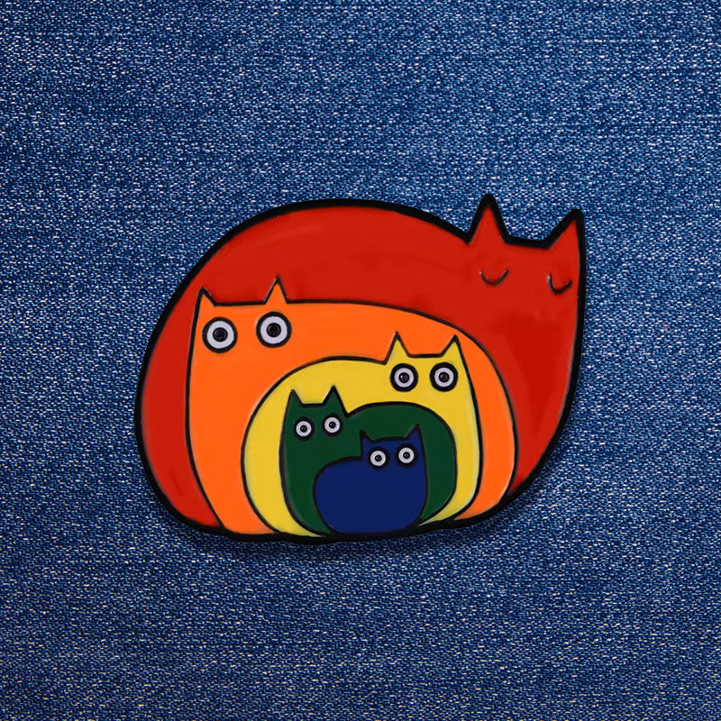סיכת אמייל של מקבץ חתולים בצבעי הקשת.