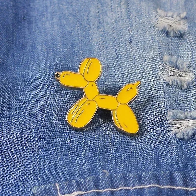 סיכת אמייל איכותית המעוצבת בצורה של כלב בלון צהוב.