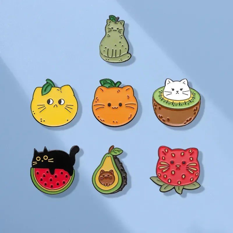 סיכת אמייל מסדרת סיכות שהיא כולה חתולים פירותיים.