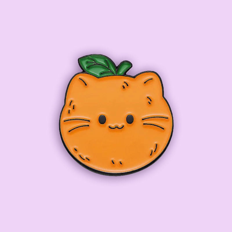חתול שהוא תפוז!!! סיכת אמייל של קריקטורה משעשעת של חתול כתפוז שמנמן.