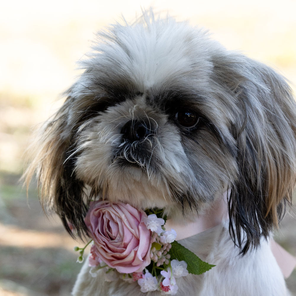 סרט קשירה לצוואר או לראש של האורח הפרוותי והכי חשוב באירוע. סרט סאטן משולב עם זר פרחים עדין בסגנון רומנטי. רק תדמיינו את התמונות.