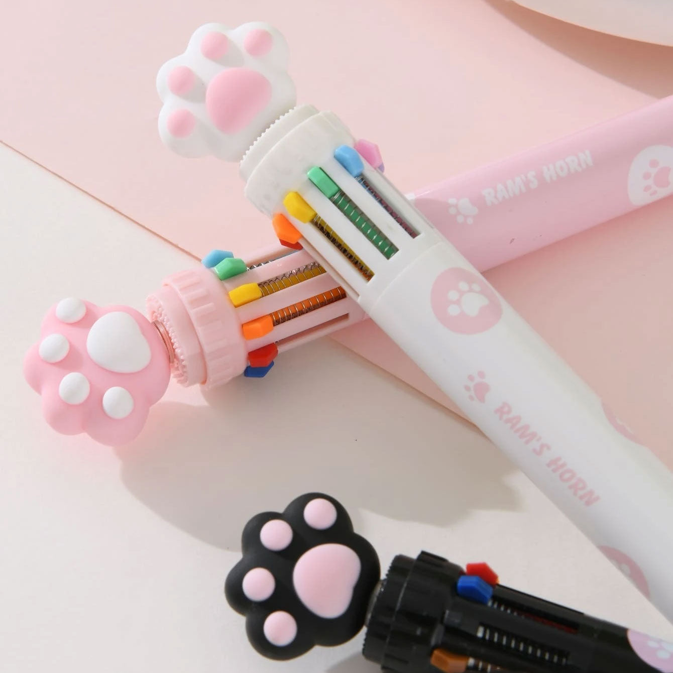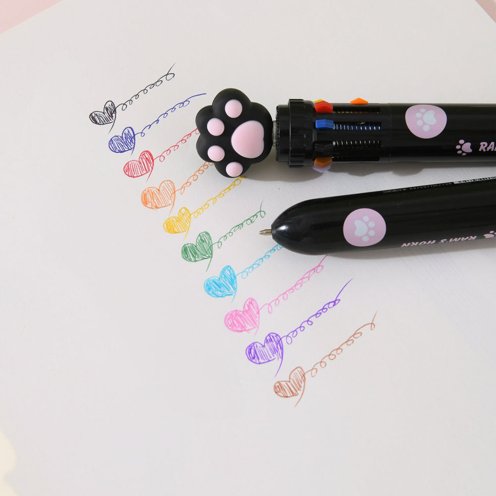עט כדורי עם עשרה ראשי דיו, בצבעים שונים, מתחלפים בקלות בלחיצה. מתאים לכתיבה, לסימון ולציור.