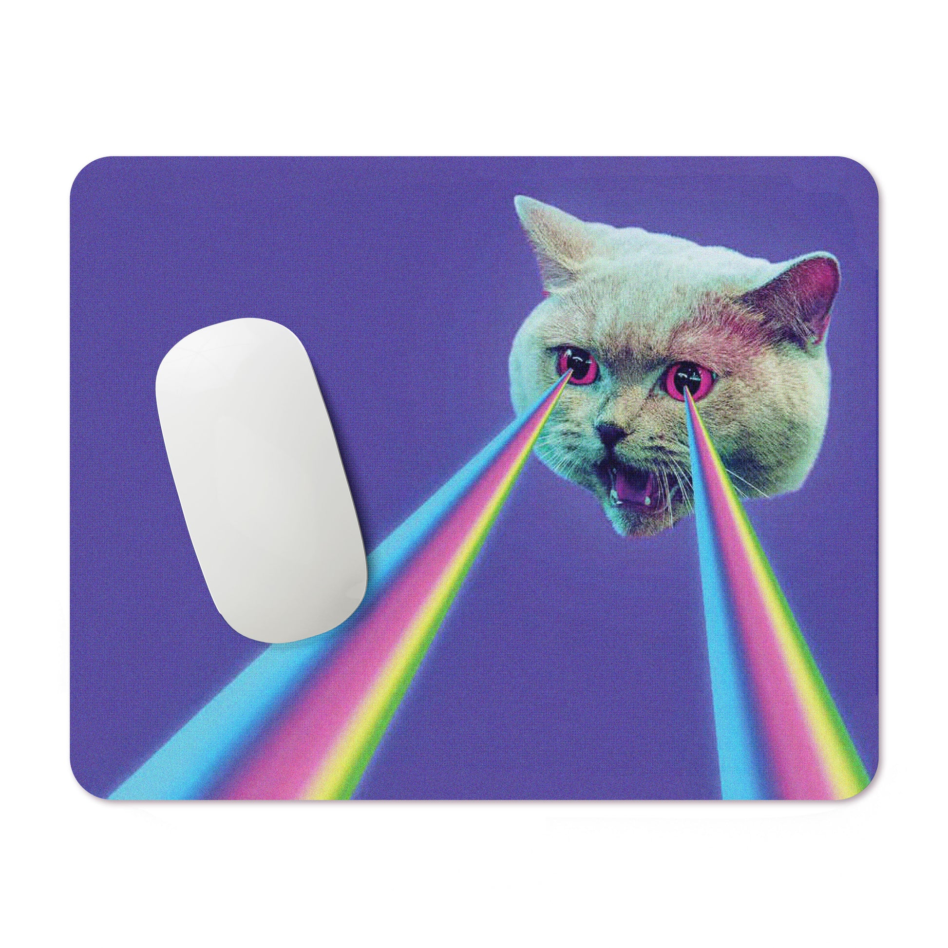 מבית היוצר של בסטיז, פד שמנציח את הרגע המוכר לכל בעלי החתולים - המבט השורף כשאתם עושים משהו שלא לרוחם של הפרוותיים! חתול השולח קרני לייזר צבעוניות ממבטו.