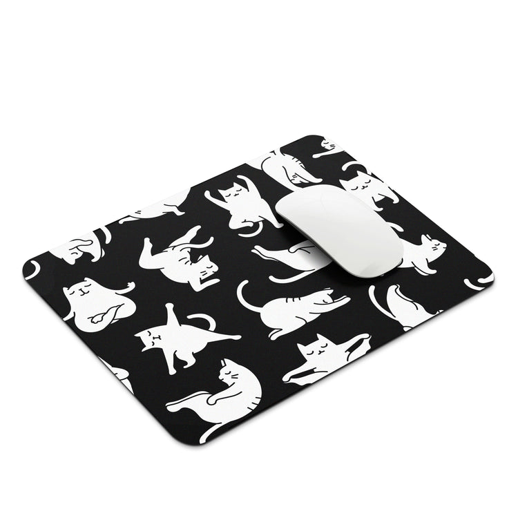 פד מושלם לעבודה, גיימינג או סתם שיטוט חסר מטרה באינטרנט – עם חבורת חתולים מדגמנים תנוחות יוגה יותר גמישות משלכם. רקע שחור, הדפס לבן, וסטייל שיגרום לעכבר שלכם לעשות "אוםםםם".
