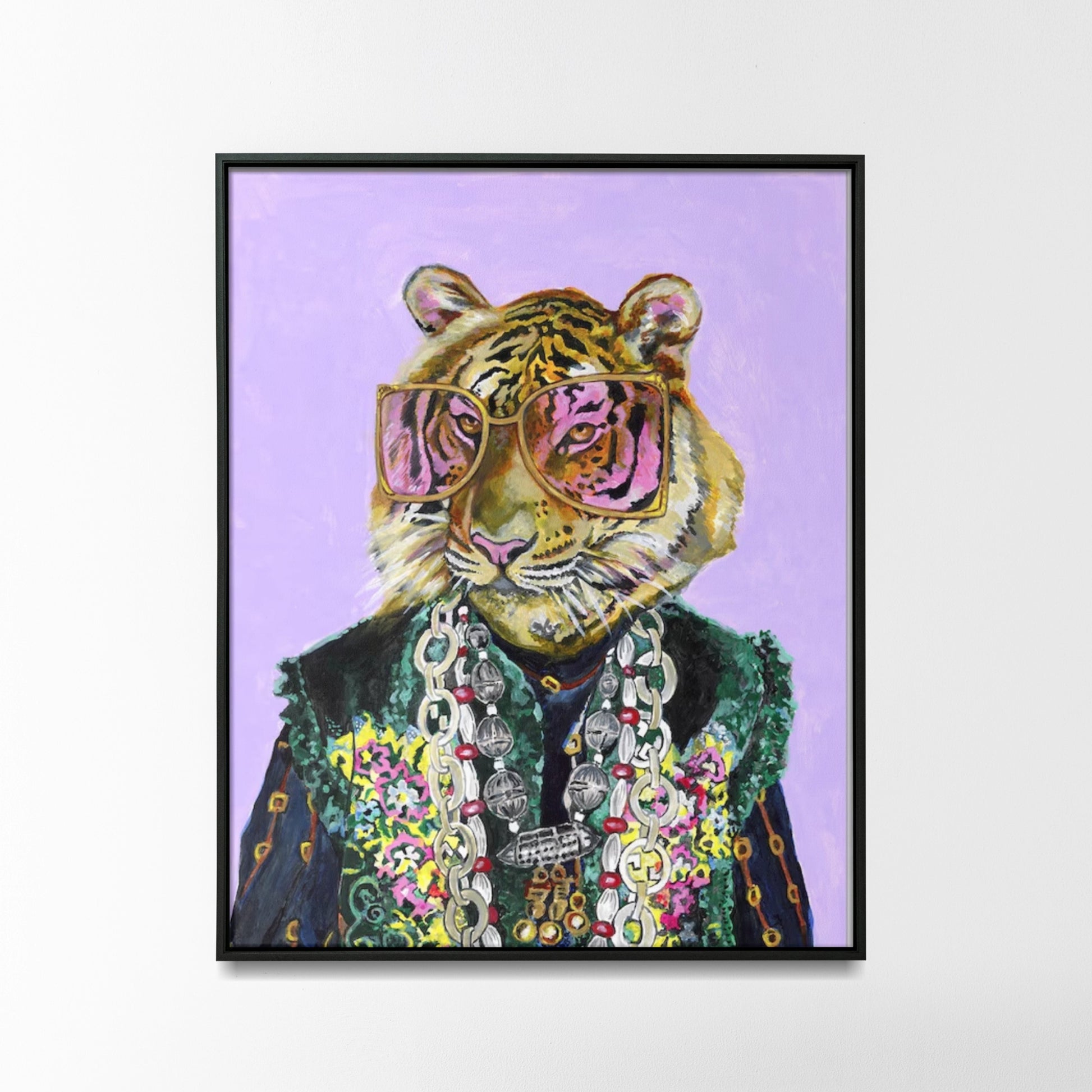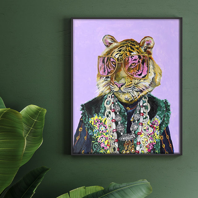 פוסטר מסדרת "חיות עם סטייל" של בסטיז פרינטס. פוסטר בגודל אידיאלי, איכותי עם הדפס של טיגריס, לבוש באאוטפיט שלא יבייש הפקה של ווג. 🐯