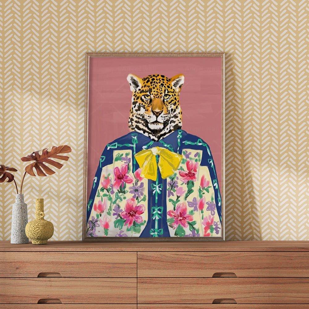 פוסטר מרהיב מקולקציית הבסטיז פרינטס הייחודית - התמונה המושלמת שתעצב מחדש כל פינה בחלל. מציג הדפס של צ'יטה, לבוש חליפה פרחונית מלאה בסטייל על רקע ורוד. השילוב המפתיע של הצ'יטה עם אופנה עכשווית יוצר אפקט ויזואלי מרשים, המשלב הומור עם אסתטיקה מודרנית.
