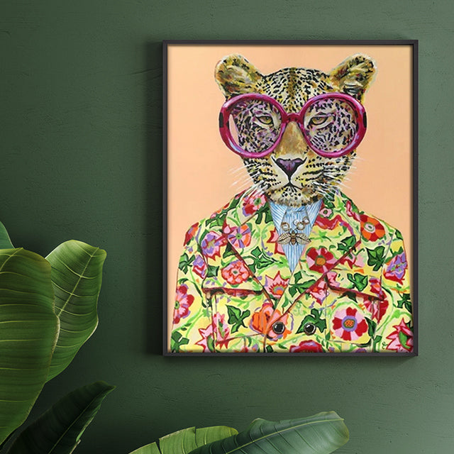 פוסטר מרהיב מקולקציית הבסטיז פרינטס הייחודית - התמונה המושלמת שתעצב מחדש כל פינה בחלל. מציג הדפס של צ'יטה, לבוש חליפה פרחונית מלאה בסטייל על רקע אפרסק. השילוב המפתיע של הצ'יטה עם אופנה עכשווית יוצר אפקט ויזואלי מרשים, המשלב הומור עם אסתטיקה מודרנית.