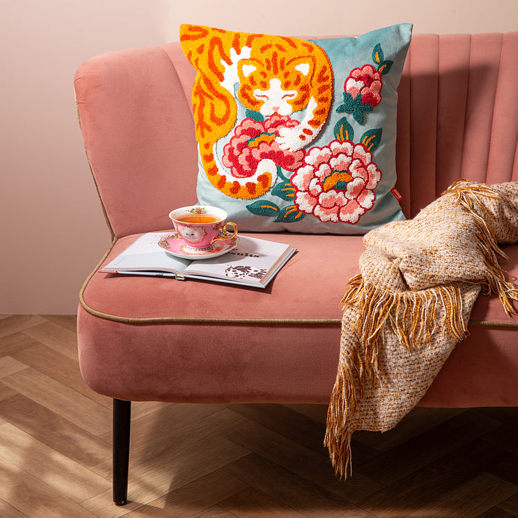 כיסוי כרית מרהיב המשלב מסורת יפנית עם טאץ' מודרני מרענן. עשוי קטיפה ומשולב עם רקמה איכותית. יוצר שילוב מנצח של טקסטורות וצבעים.