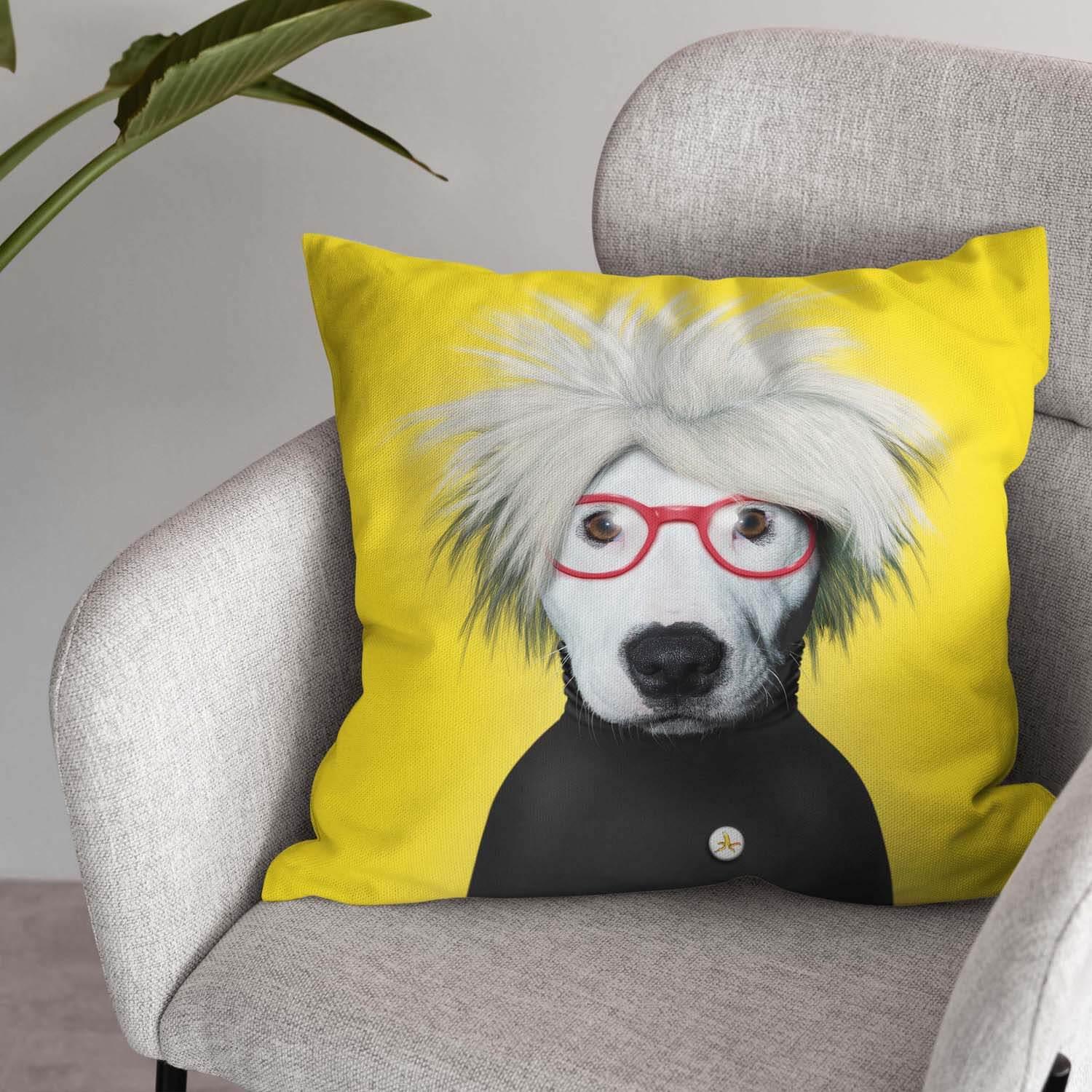 ציפה לכרית מהליין המטורף של Pets Rock עם הדפס משוגע של סלבריטי פט. עשויה מבד קטיפה, איכותי, רך ונעים. מזהים את הסלב? רמז...אמן פופ ארט אמריקאי שבין היצירות הידועות שלו תמצאו ציורים של בקבוק קולה, קופסת שימורים, מרק וגם בננה!