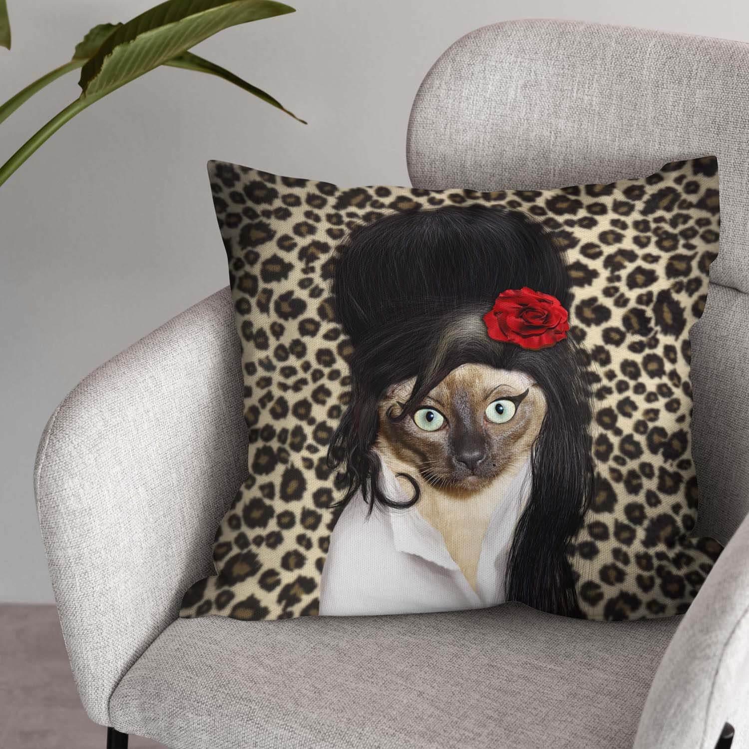 ציפה לכרית מהליין המטורף של Pets Rock עם הדפס משוגע של סלבריטי פט. עשויה מבד קטיפה, איכותי, רך ונעים. מזהים את הסלב? רמז... זמרת בריטית יהודיה ומפורסמת עם קשר מיוחד לצבע שחור ותסרוקת מנופחת אייקונית.