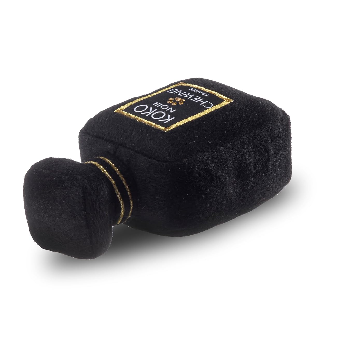 צעצוע פלאפי מצפצף מעוצב בהשראת מותג יוקרה האהוב עם הכיתוב "Koko Chewnel".