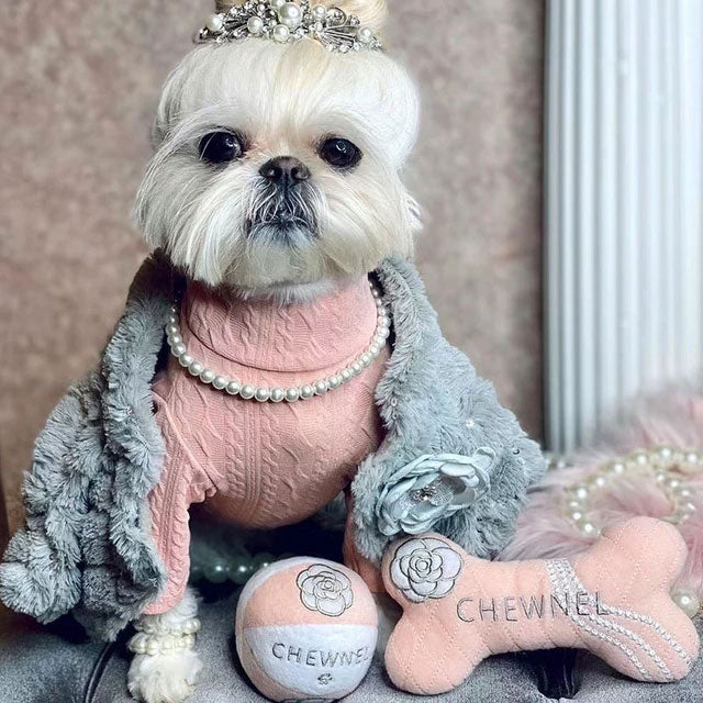 צעצוע פלאפי מצפצף מעוצב בהשראת מותג יוקרה האהוב עם הכיתוב Chewnel. בצורה של בקבוק בושם שחור אלגנטי, מעוטר בתיפורי זהב שכל כלב אריסטוקרטי יעריך.