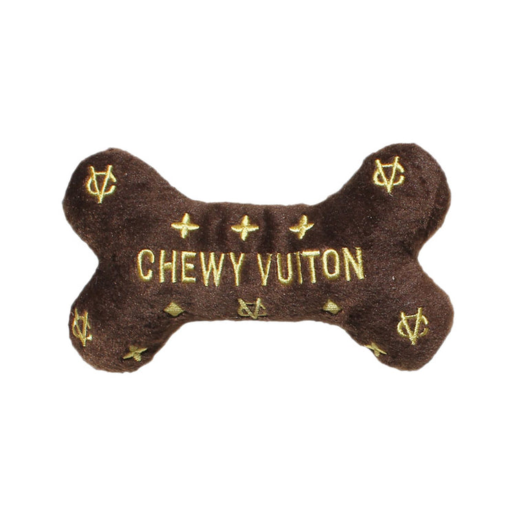 צעצוע עצם פלאפי ומצפצף. מעוצב בהשראת מותג יוקרה אהוב, בצבע חום ועם תיפורי זהב עליו הכיתוב "Chewy vuiton". צעצוע שכל כלב אריסטוקרטי יעריך.