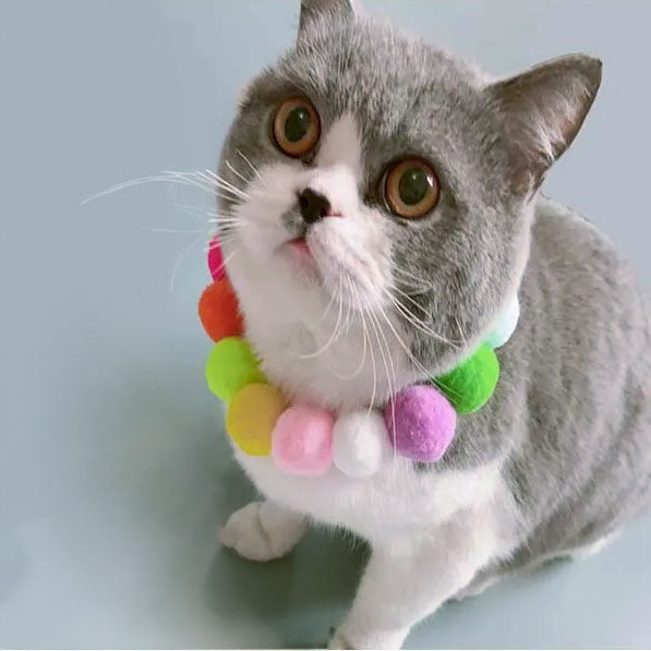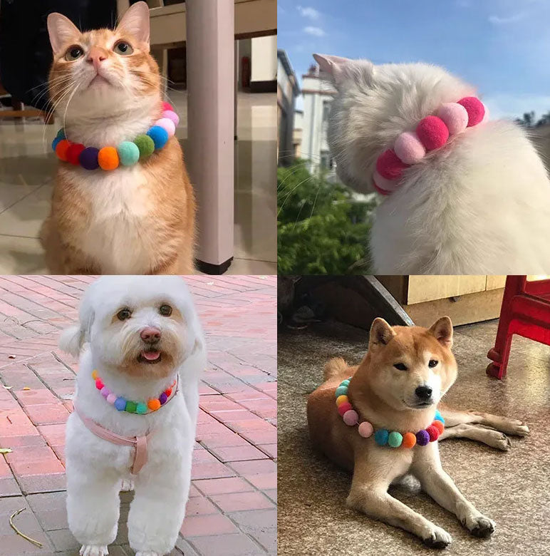 קולר מתוק ופלאפי, עשוי מכדורי פונפון צבעוניים, יעלה את חיית המחמד שלכם לליגה חדשה לגמרי של חמידות.