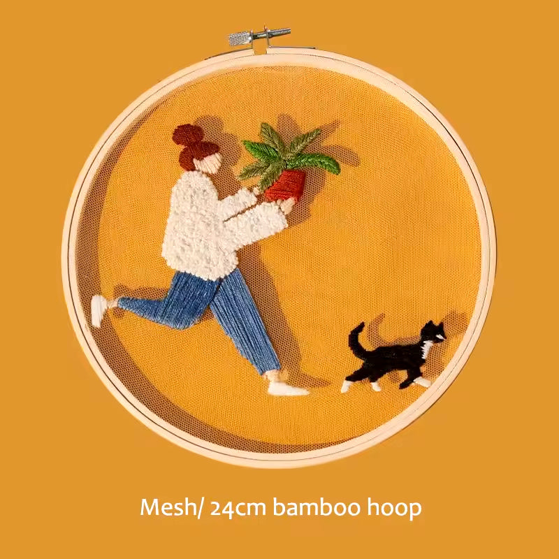 מגיע עם כל הציוד הנחוץ לרקמה: בד רשת עם ציור יפייפה, מחט ייעודית, חישוק מתיחה וחוטי רקמה צבעוניים.