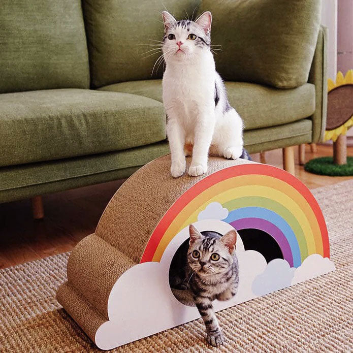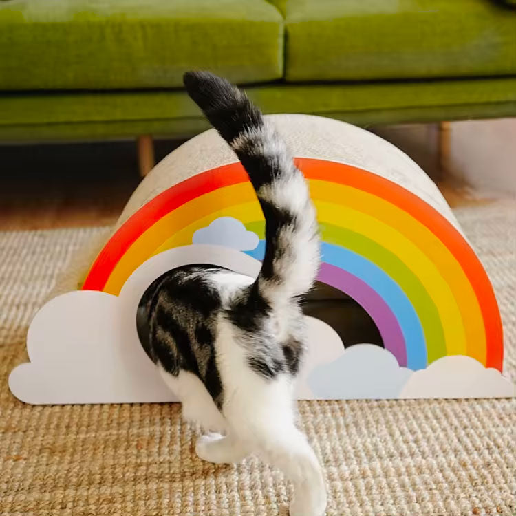 מתקן גירוד מהמם בצורת קשת בענן עבור חתולים. יוסיף צבע ושמחה לעיצוב הבית ובו זמנית יספק לחתול שעות של משחק והנאה.