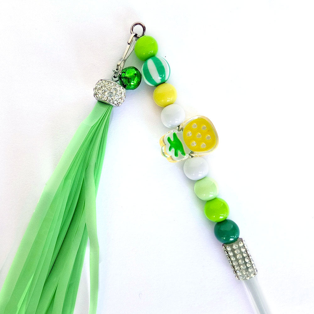 שרביט שיהפוך את חתולכם למלך המשחקים! צעצוע לחתול שבידיים שלכם הופך לשרביט קסמים שיעיר את הנמר הפנימי של חיית המחמד שלכם. במרכזו מתנוסס אננס מקסים, המוקף בחרוזים צבעוניים ונוצצים ובסופו פעמון קטן.