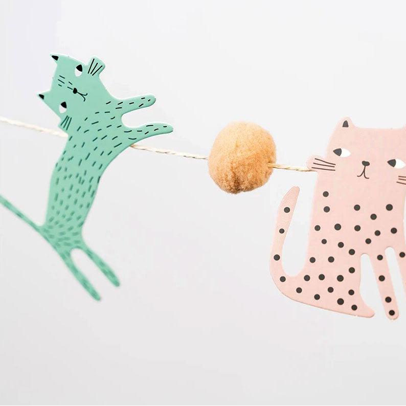שרשרת יומהולדת לתליה ולקישוט, בסגנון וינטג' ייחודי, משולב בציורי חתולים מהממים ופונפונים פלאפים צבעוניים. ליום הולדת לחיות או לאנשים שלהם.