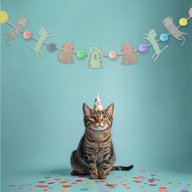 כל יום הולדת ראוי לחגיגה מיוחדת. הציגו בגאווה את שרשרת יום ההולדת הייחודית שלנו, המשלבת בחן ציורי חתולים מקסימים עם פונפונים צבעוניים ורכים.