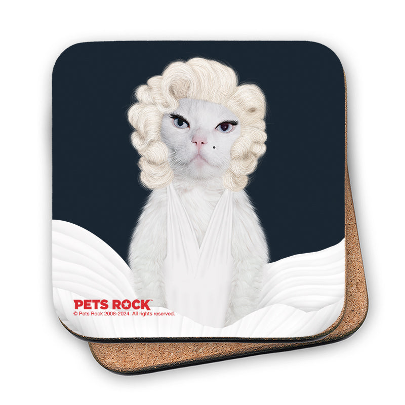 תחתית לכוס מהליין המטורף של Pets Rock עם הדפס של סלבריטי פט. מזהים את הסלב? רמז...שחקנית ודוגמנית אמריקאית שאוהבת שמלות מתעופפות.