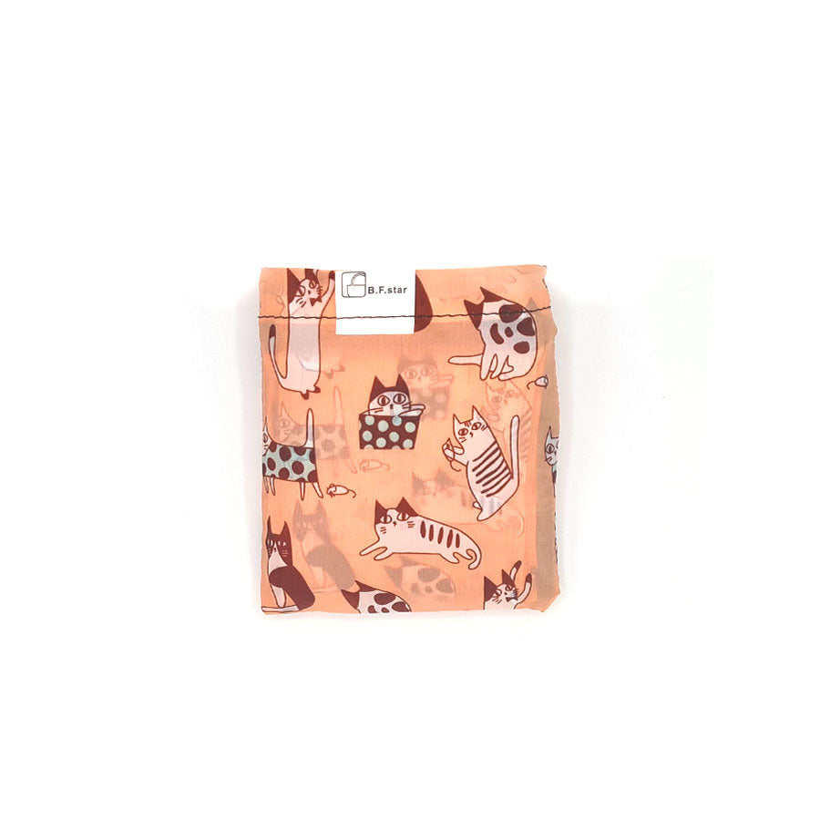 תיק קניות רב-פעמי עם איורי חתולים על רקע כתום אפרסק. מי אמר שאי אפשר להציל את העולם בסטייל?