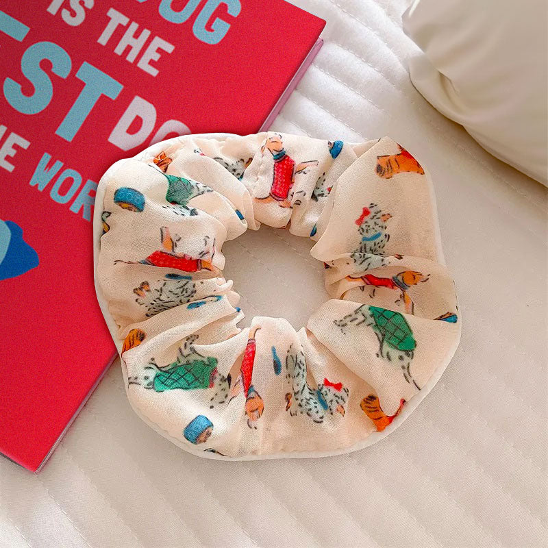 גומיית סקראנצ'י חזקה ואיכותית. מלאה בסטייל ובעיטורים מתוקים של כלבים בסגנון רטרו.